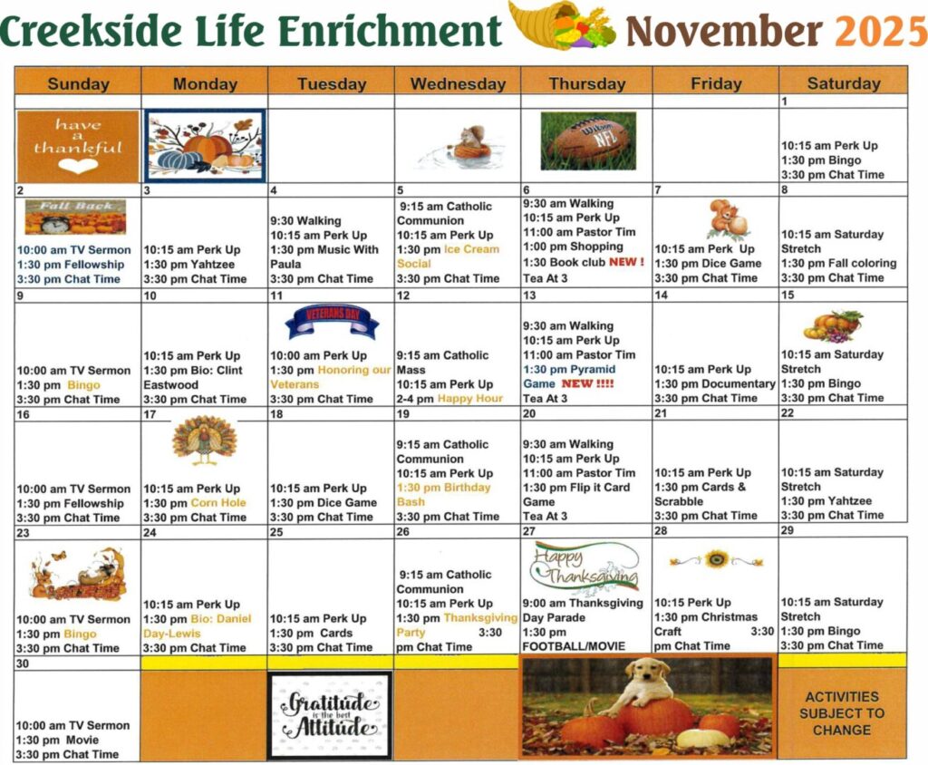 November Activities Calendar posted by: Joanne Crowley November 1, 2025 No CommentsUncategorized Read More